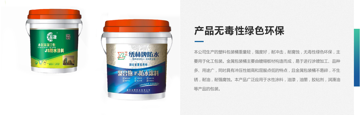 本公司生產(chǎn)的塑料包裝桶重量輕,強度好,耐沖擊,耐腐蝕,無毒性綠色環(huán)保,主要用于化工包裝。金屬包裝桶主要由鍍錫板材構(gòu)造而成,易于進行涂鍍加工、品種多、用途廣,同時具有沖壓性能高和屈服點低的特點,且金屬包裝桶不易碎,不生銹,耐油,耐強腐蝕。本產(chǎn)品廣泛應(yīng)用于水性涂料,油漆,油墨,膠粘劑,潤滑油等產(chǎn)品的包裝。